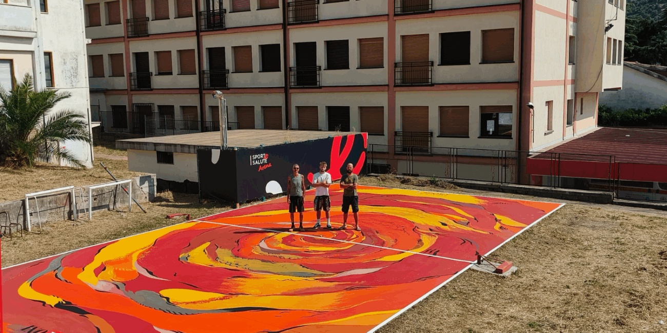 Tra i progetti più significativi del 2024, il playground n.30 di SAB Project è stato realizzato in occasione del Giffoni Film Festival. Ad HG80 è stata affidata da Sport e Salute – la società dello Stato che promuove l’attività fisica e corretti stili di vita – la riqualificazione del campo esterno di una scuola, con l’obiettivo di restituirlo alla cittadinanza come spazio accogliente per attività sportive e artistiche. L’intervento è stato curato da Paolo “il Baro” Baraldi, artista e socio di HG80, che ha trasformato il campo in un luogo vivo, colorato e simbolico, capace di connettere scuola, giovani e comunità locali. Parte integrante del programma Giffoni Sport, il progetto ha rappresentato una delle prime esperienze in cui SAB ha incrociato il mondo del cinema, generando un contesto ibrido dove arte, educazione e partecipazione si incontrano.